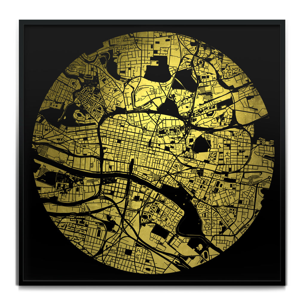 - UV treated ink on 24 karat gold leaf, gold leaf hand gilded onto 3mm aluminum composite, framed