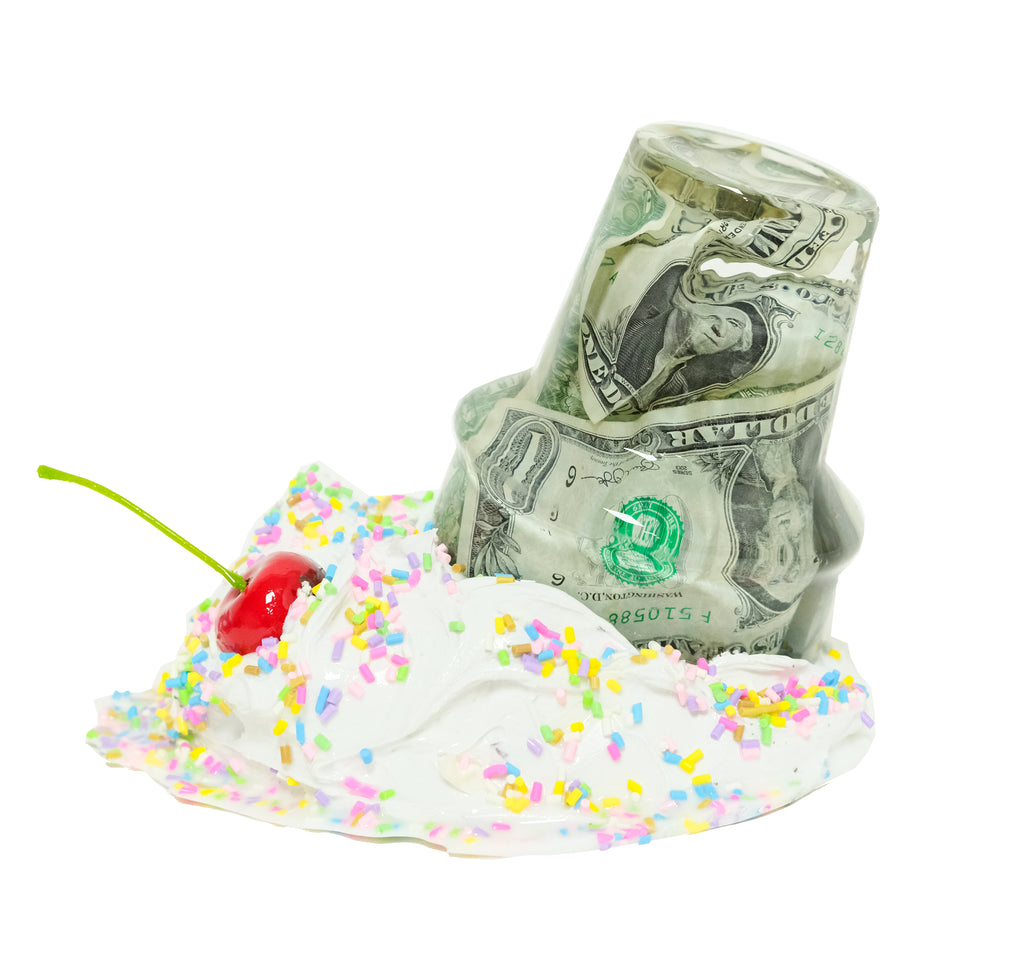 As a medium, resin has allowed me to bring life to my sculptures with a juxtaposition of rich colors, textures, opacity, and translucency. After years of learning how to work with this challenging material, the results that I can achieve with resin are well worth the time and patience required to create a single sculpture. In order to turn my design ideas into reality, I must push the resin to its limits - a process I very much enjoy.I have always been inspired by the universal recognition of the frozen treats that bring joy to people worldwide. The sizes, shapes, and flavors of these treats vary depending on culture, but they bring smiles to people just the same. It is my intention to spark joy and inspire nostalgia by utilizing the unifying form of the ice pop. If I can connect with someone across the world over a simple thing like an ice pop, then I feel like I have created a sense of unity and positive connection. Why are they melting? This element begs for the sculptures to be rescued. Once saved from impending doom, the sculpture is then coveted in its partially melted form. The perfectly imperfect half melted sculpture is the epitome of the series title “Tragically Sweet.”