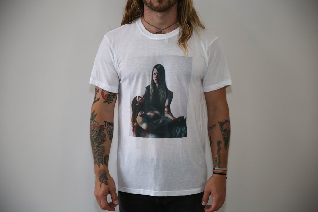 A comfortable and lightweight unisex fine art t-shirt, based on the Heroin Addict painting from Art Unified artist Johan Andersson.