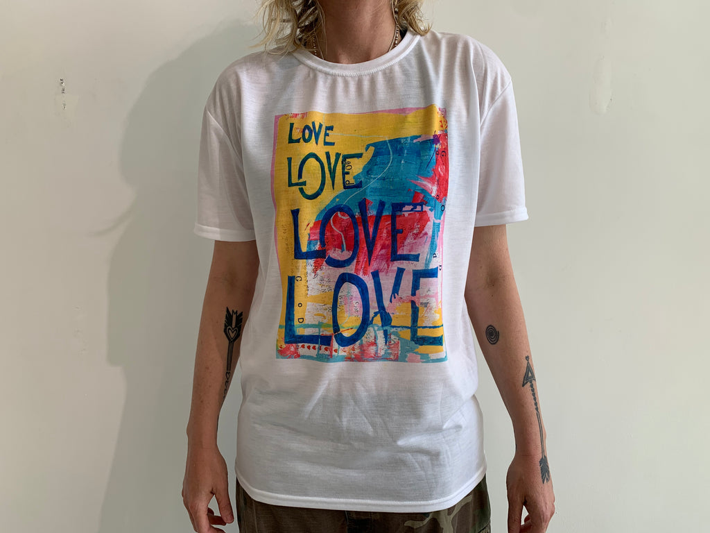 A comfortable and lightweight unisex fine art t-shirt, based on the LoveisGodisLove artwork from Art Unified artist Crista Hope
