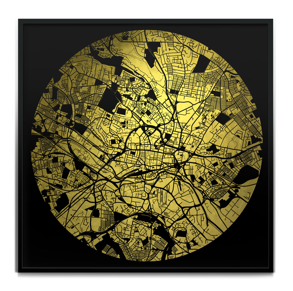 - UV treated ink on 24 karat gold leaf, gold leaf hand gilded onto 3mm aluminum composite, framed