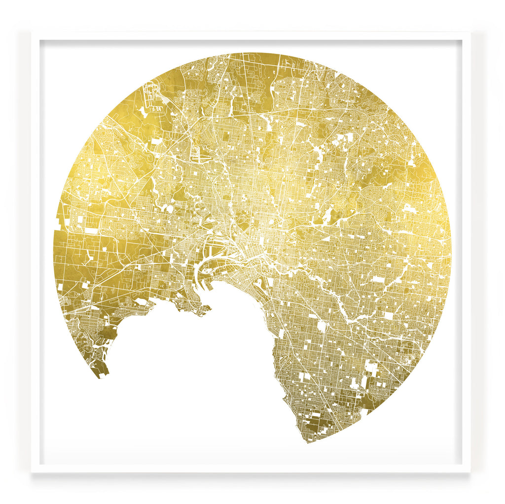 - UV treated ink on 24 karat gold leaf, gold leaf hand gilded onto 3mm aluminum composite, framed