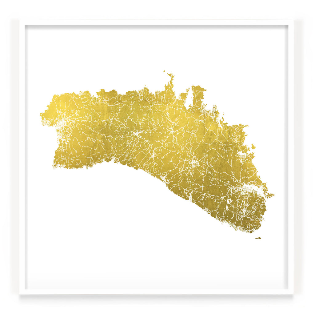 - UV treated ink on 24 karat gold leaf, gold leaf hand gilded onto 3mm aluminum composite, framed