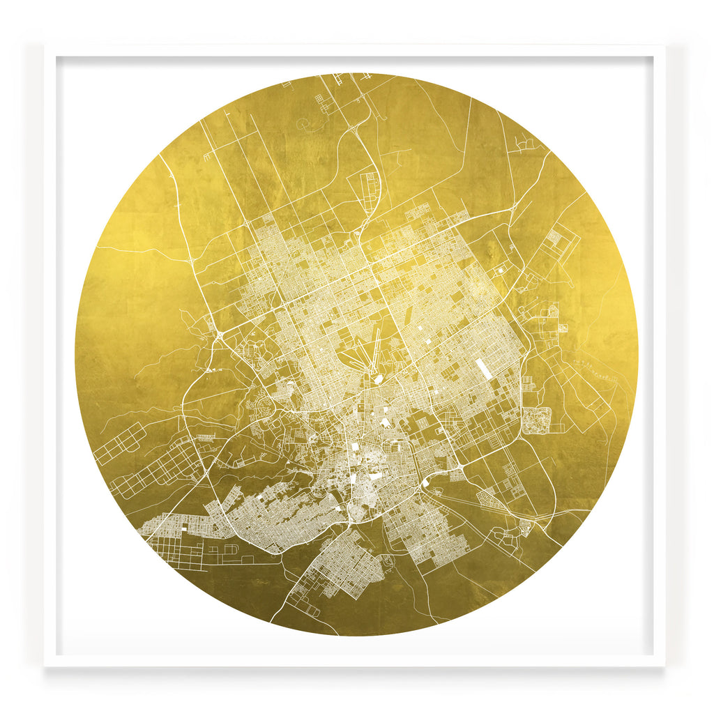 - UV treated ink on 24 karat gold leaf, gold leaf hand gilded onto 3mm aluminum composite, framed