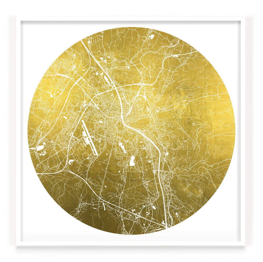 - UV treated ink on 24 karat gold leaf, gold leaf hand gilded onto 3mm aluminum composite, framed