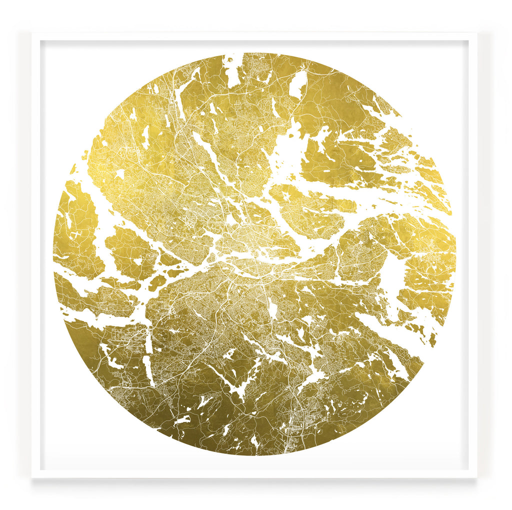 - UV treated ink on 24 karat gold leaf, gold leaf hand gilded onto 3mm aluminum composite, framed