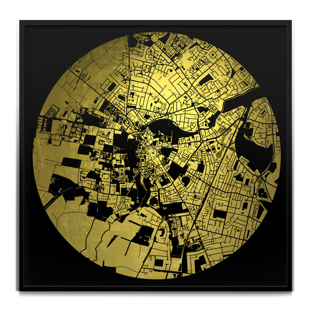 - UV treated ink on 24 karat gold leaf, gold leaf hand gilded onto 3mm aluminum composite, framed