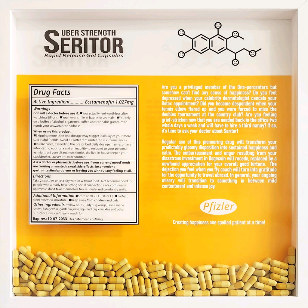 Spray paint on canvas, inks directly on plexiglass and gel capsules