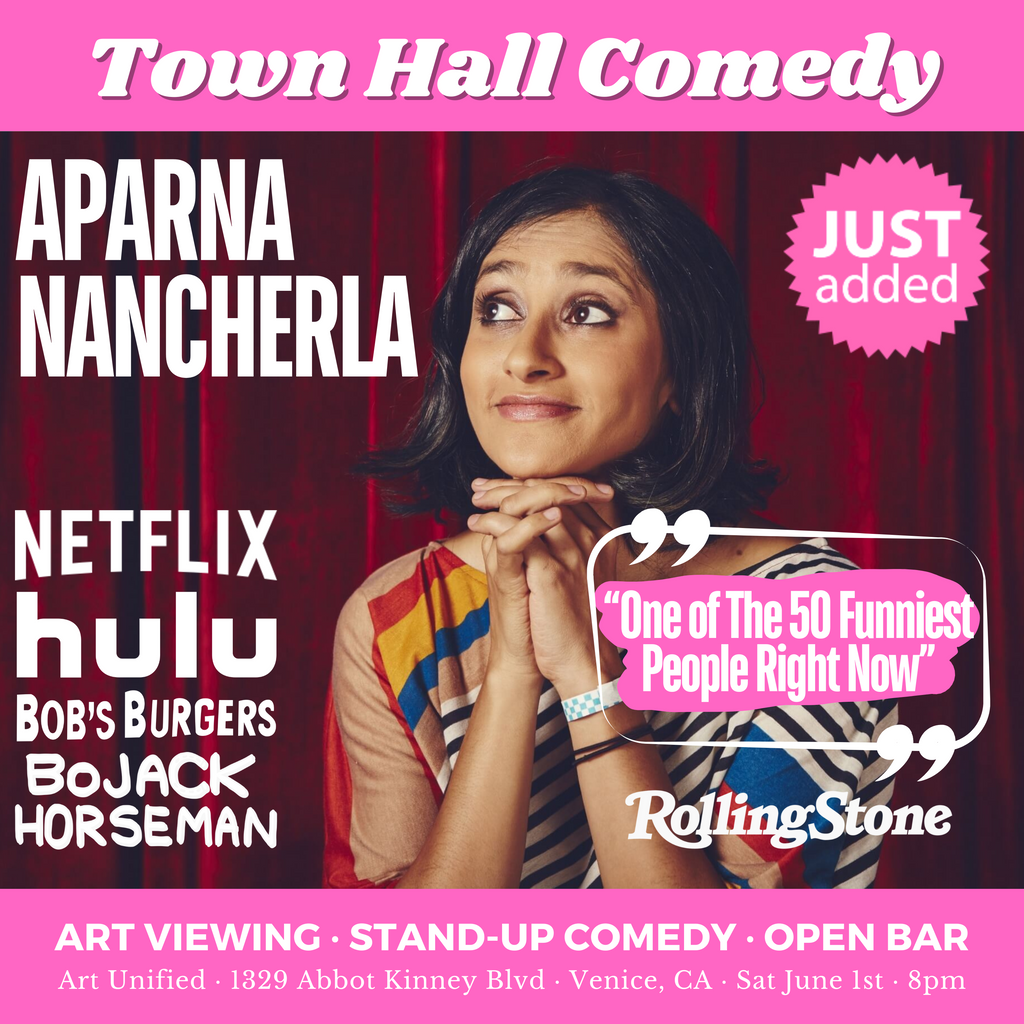 Art Unified presents a special event combination art viewing and stand-up comedy show hosted by Comedy Central's Pardis Parker, with JUST-ADDED SPECIAL GUEST APARNA NANCHERLA FROM NETFLIX!